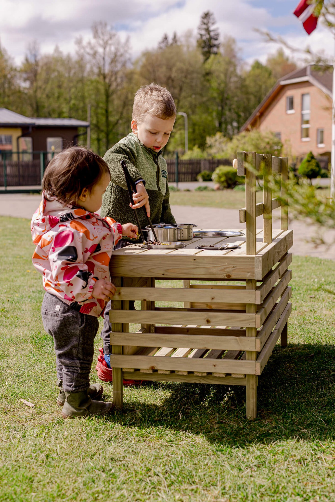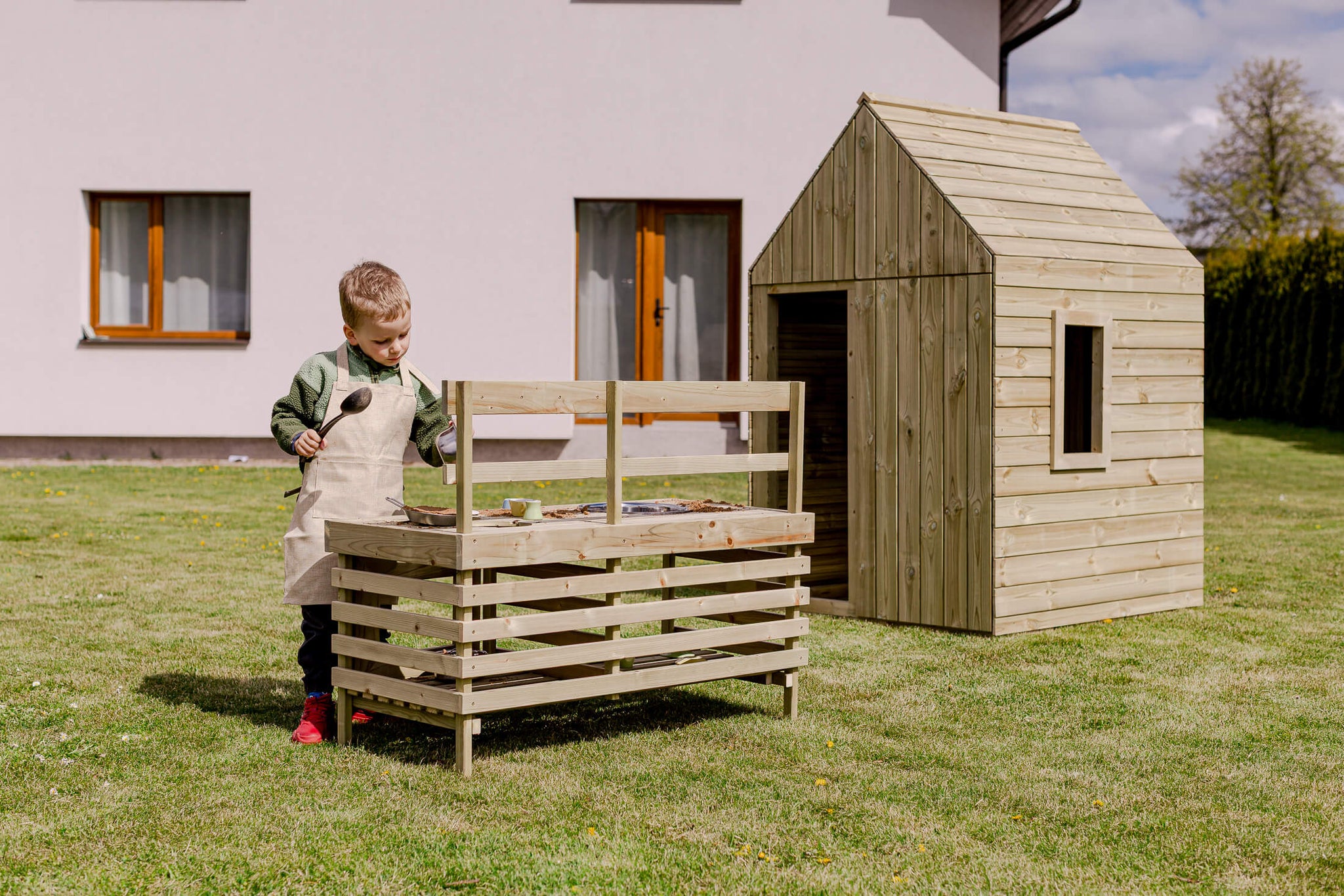Stor sølekjøkken til barn - utendørs lekekjøkken i tre