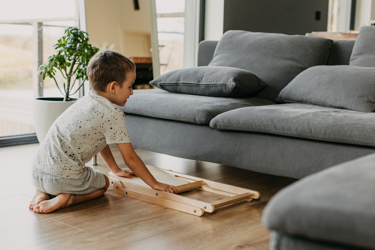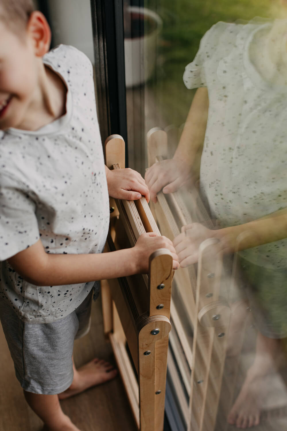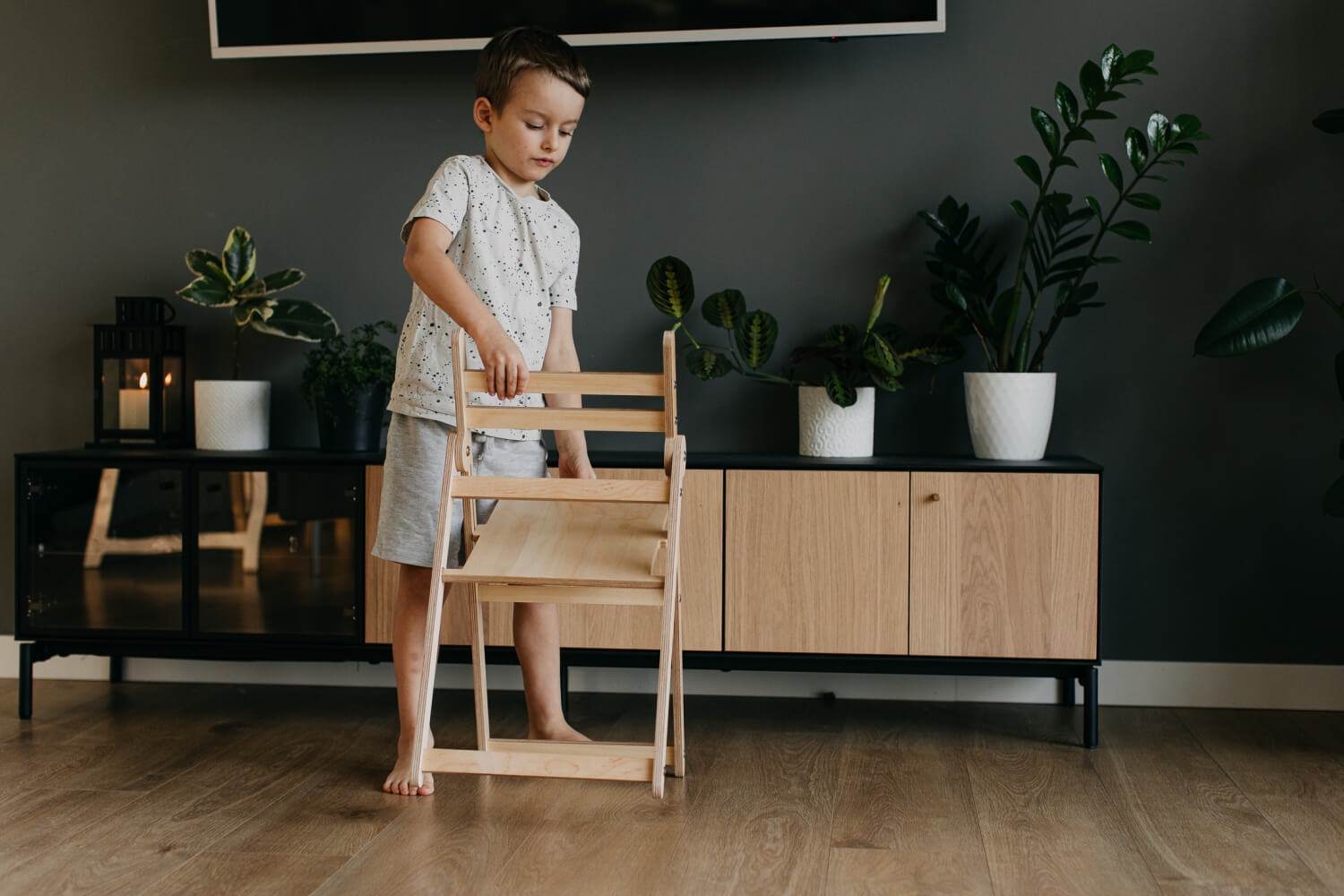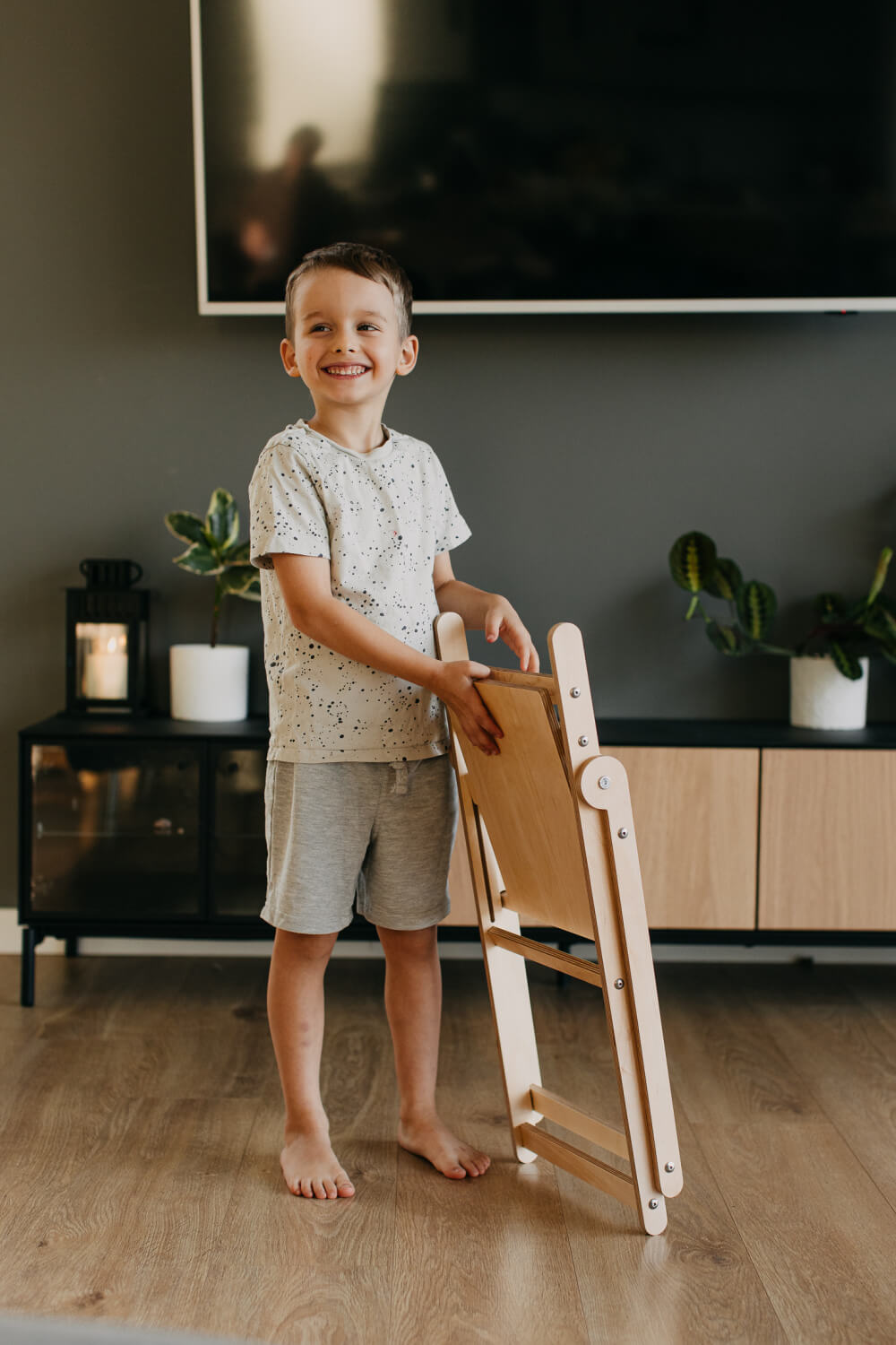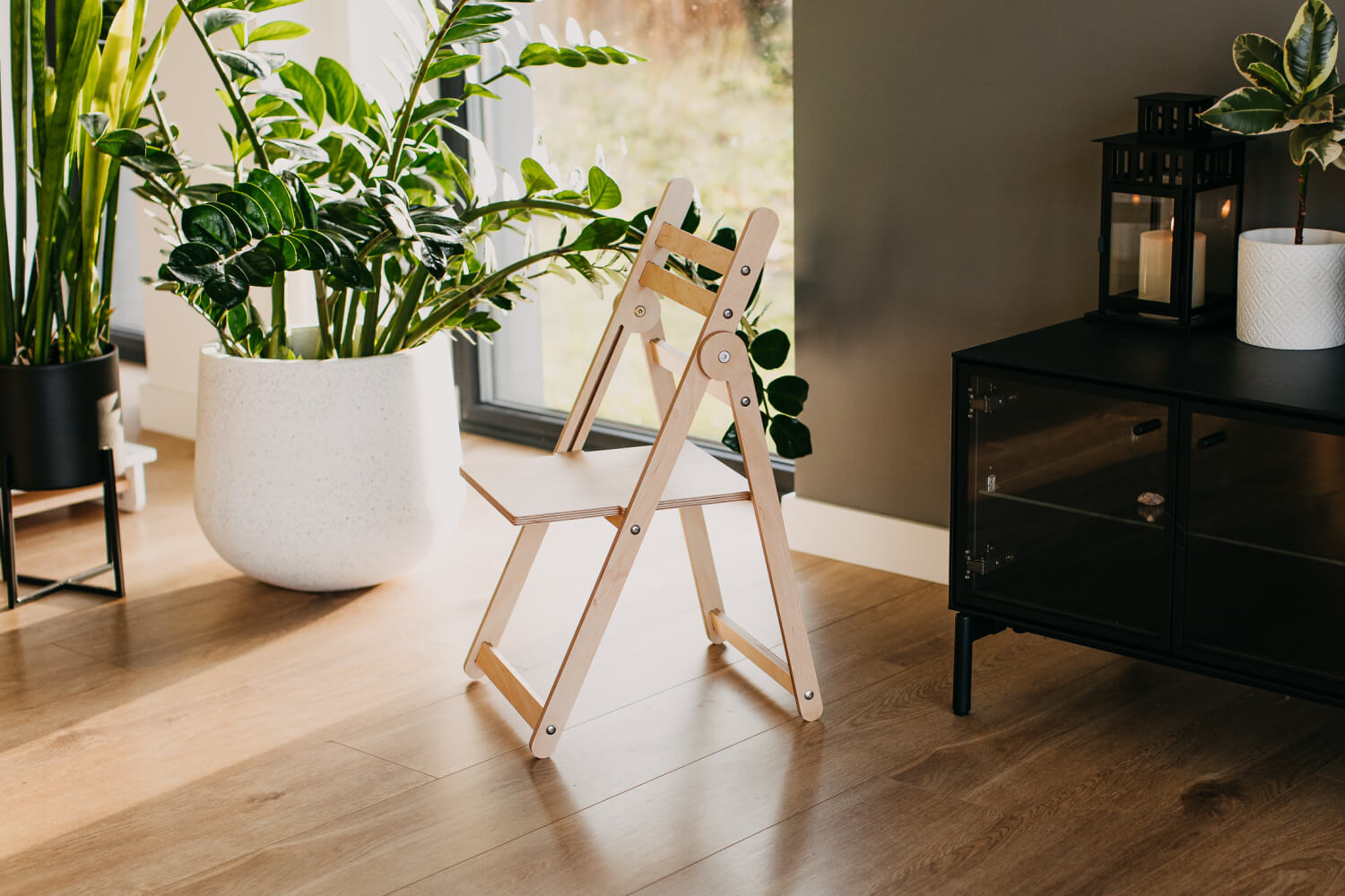 Sammenleggbar barnestol i solid bjørktre – perfekt for små rom og aktive barn. Denne praktiske stolen er lett å klappe sammen og lagre under senga eller bak døren, noe som gjør den ideell for familier som ønsker å spare plass. Laget av 100% naturlig bjørktre fra europeisk produksjon, garanterer den lang levetid og holdbarhet som tåler daglig bruk.