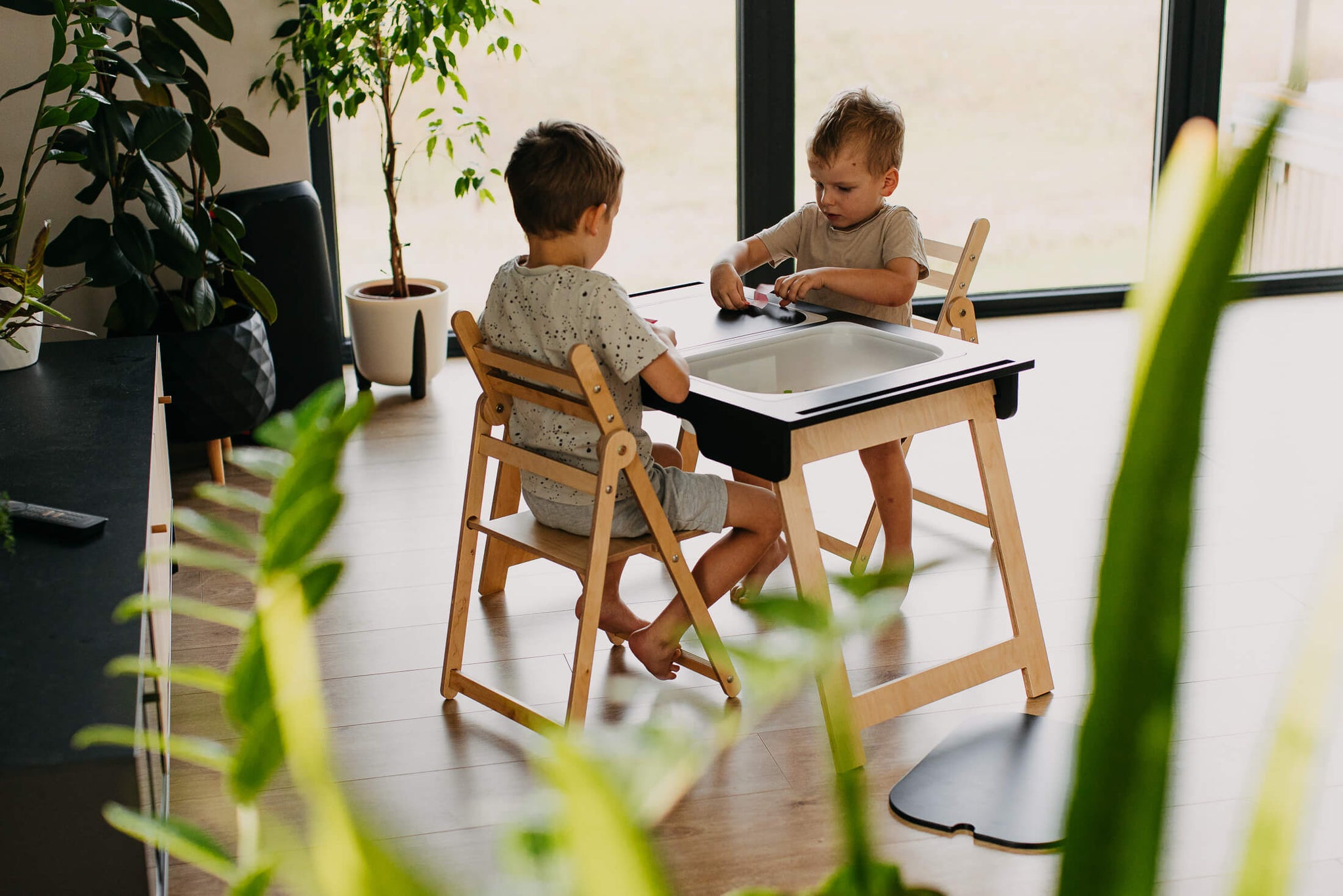 • Last inn bildet i Galleri-visningsprogrammet, barnebord med barnestol i tre