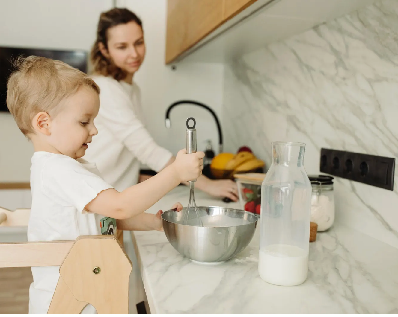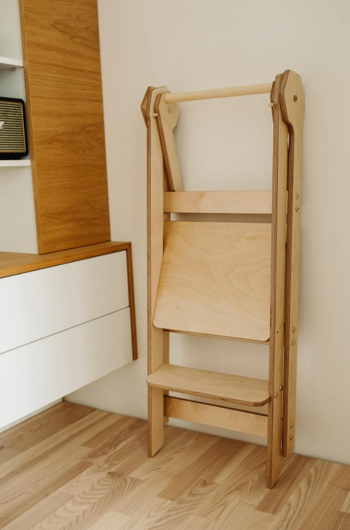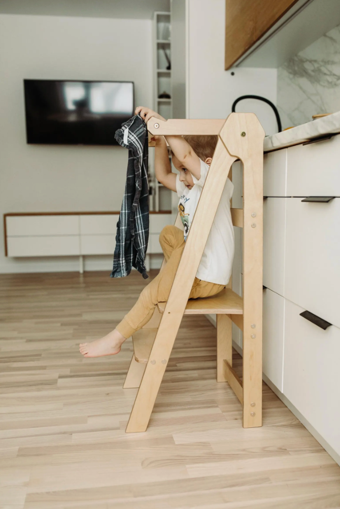 Minimalistisk og funksjonelt design: Sammenleggbar Kjøkkenhjelper er skapt for barn fra 12 måneder til 5 år. Med en vekt på bare 5 kg - både solid og lett, ideell for barn som er nysgjerrige på å være med på det som foregår på kjøkkenet.